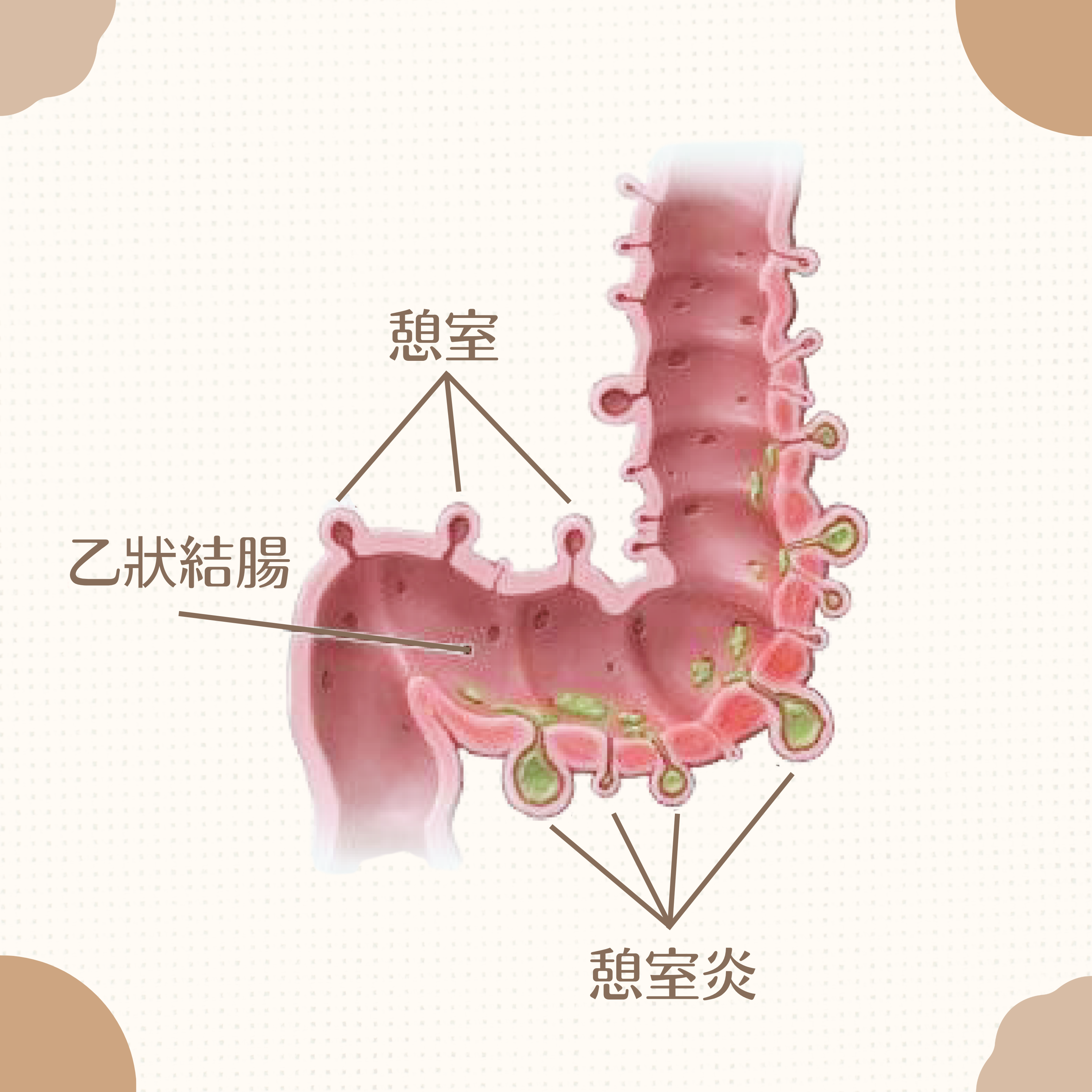 不過在某些人身上,糞便卻會卡在憩室裡面,久而久之就會造成憩室發炎。